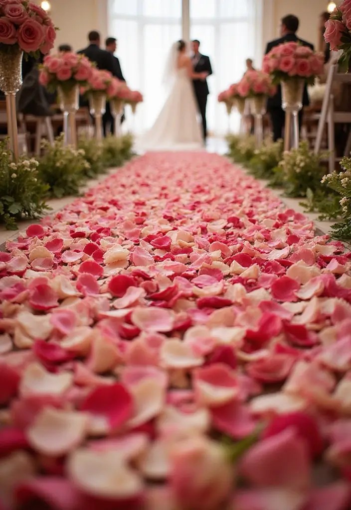 Choose a color palette that complements your wedding theme—think blush pinks, deep reds, or even a rainbow of shades for a bohemian vibe. You can lay the petals directly on the ground or have them arranged in heart shapes leading up to the altar. Make sure to have your florist on hand to assist in creating this breathtaking entrance.