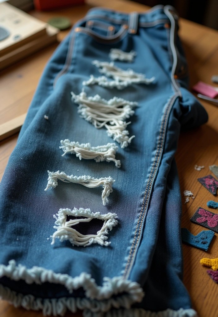 To tackle your project, make sure you have a reliable pair of scissors on hand for precise cutting. This patchwork approach not only extends the lifespan of your clothing but also serves as a fantastic outlet for your creativity in fashion. Embrace this eco-friendly trend and let your personality shine through your unique designs!