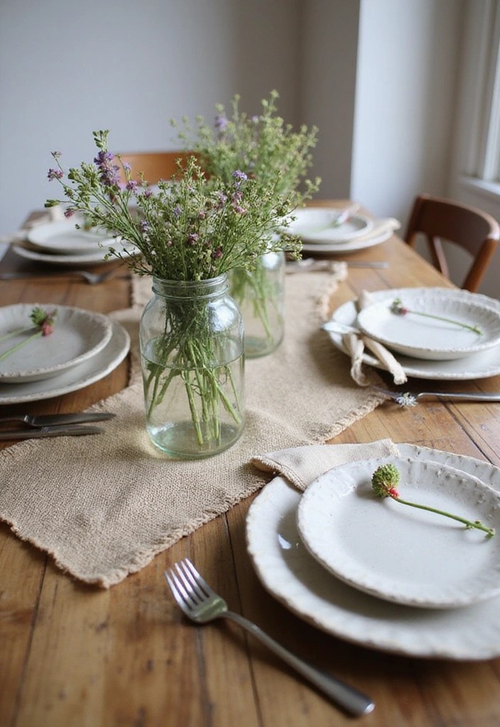 Add burlap or gingham table runners and mason jars filled with wildflowers for a true farmhouse touch. Consider using wooden boards for serving food to enhance the rustic vibe.