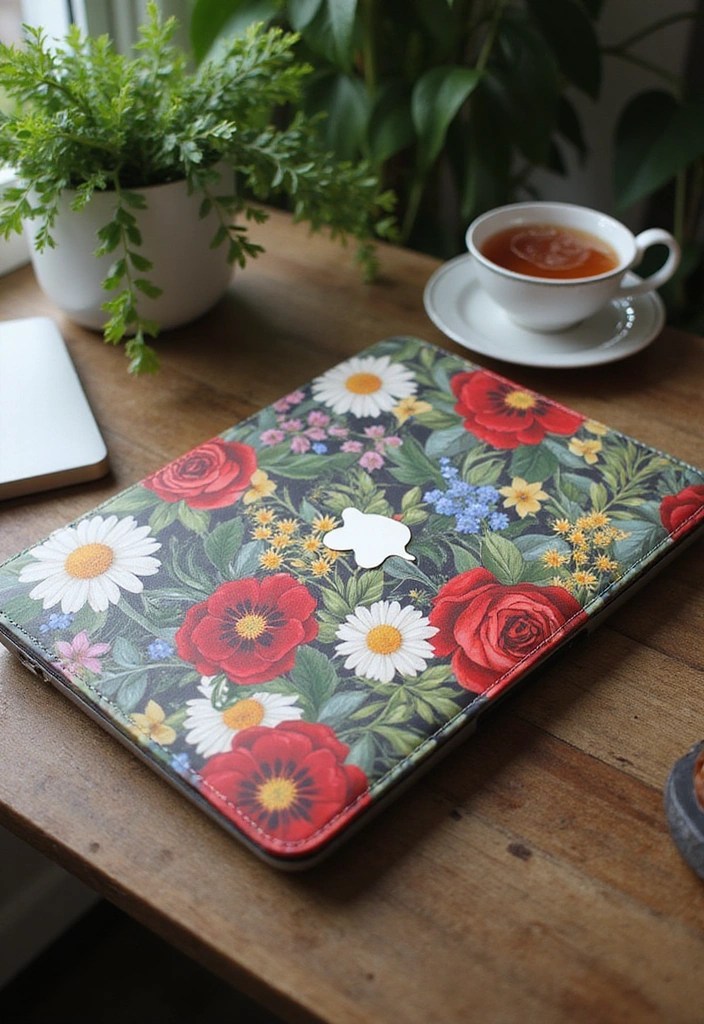 Imagine a laptop cover adorned with beautiful floral patterns that bloom with life and color.
