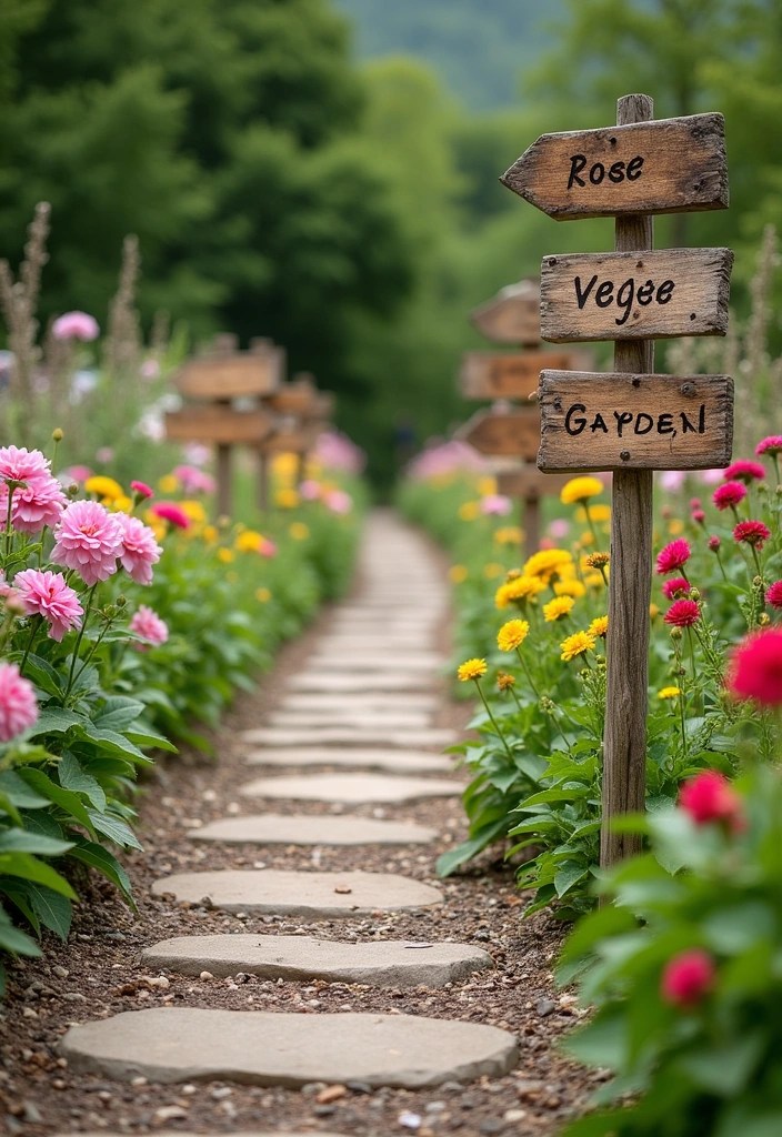 Consider using pathway sign kits for a cohesive look, or opt for decorative garden markers to add a personal touch that complements your garden’s theme.