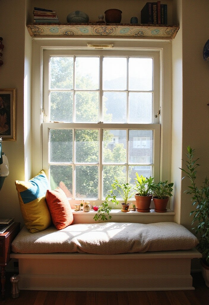 Imagine a built-in bench cushioned with soft pillows, perfectly tucked beneath a large window.