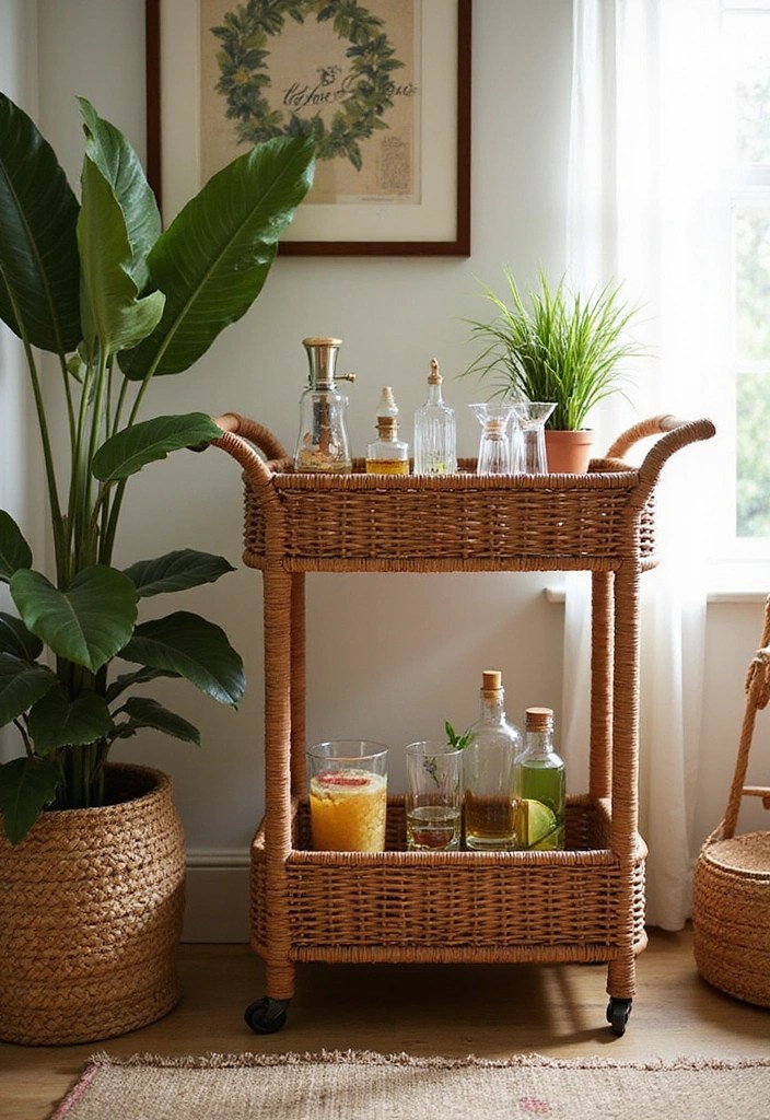 With a little creativity, your wicker bar cart can shine in any nook, adding a touch of boho flair wherever it goes!