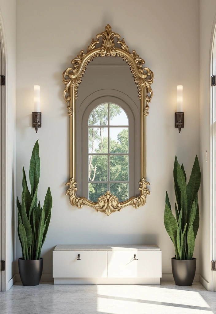 – A large statement mirror can act as a focal point and make smaller spaces feel larger.