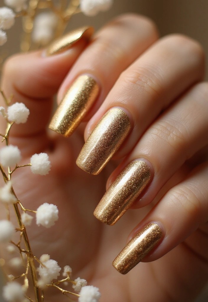 Picture nails painted in reflective gold, silver, or rose gold, catching the light and drawing attention.