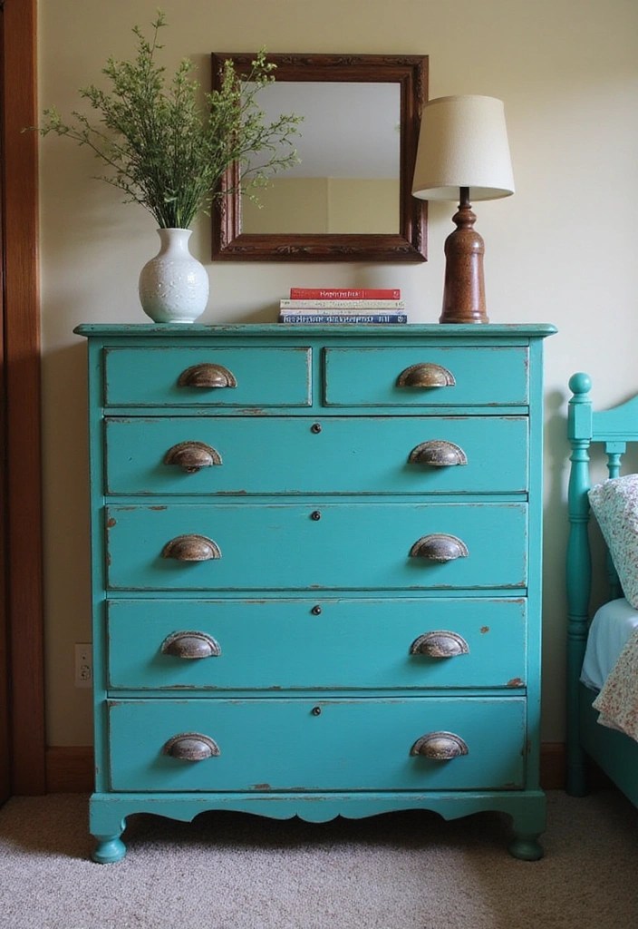 Consider using chalk paint for a matte finish that’s easy to work with. It gives that perfect aged look and adheres well to most surfaces. Adding a contrasting color to the inside of the drawers creates a fun surprise every time you open them. For a unique touch, replacing traditional hardware with quirky knobs or pulls can elevate the overall aesthetic. And don’t forget about stenciling designs or patterns for a more personalized touch.
