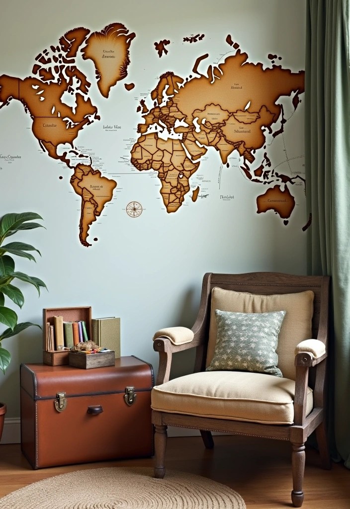 To enhance the theme, consider adding a vintage suitcase for storing their favorite books, giving the space a delightful travel touch. Pair this with a cozy camping chair that mimics the feel of outdoor adventures, allowing them to settle in comfortably as they dive into their stories.