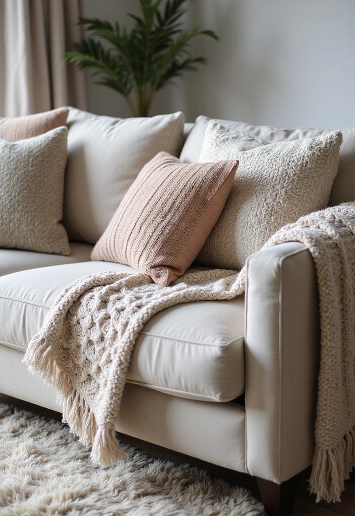 Elevating your decor with textures not only enhances aesthetic appeal but also increases comfort, making your living room a place you can’t wait to unwind in.