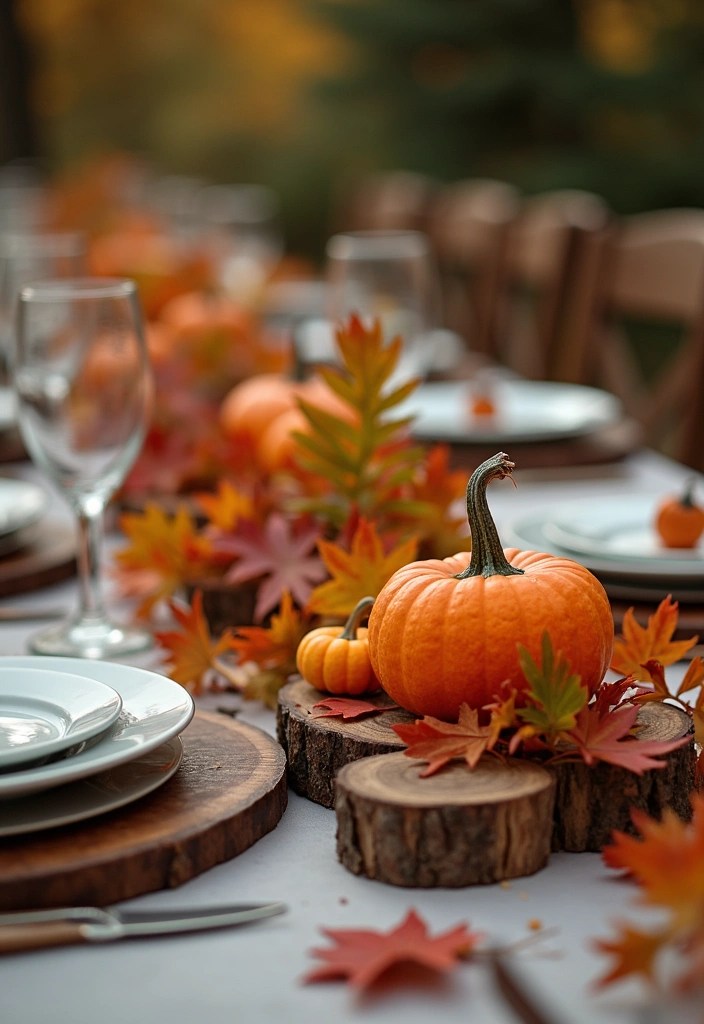 Additionally, incorporating rustic wooden table accents and charming burlap table runners will add a touch of elegance while keeping costs down. This approach not only saves money but also establishes a relatable atmosphere that resonates with your guests and perfectly reflects the season’s spirit.