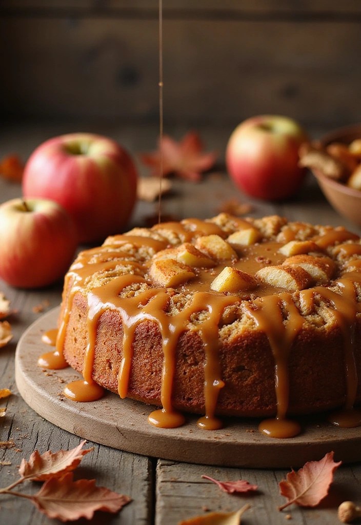 This cake features layers of moist apple spice cake filled with a creamy caramel frosting and chunks of fresh apples. Top it off with a drizzle of caramel sauce and a sprinkle of cinnamon for that perfect fall touch.